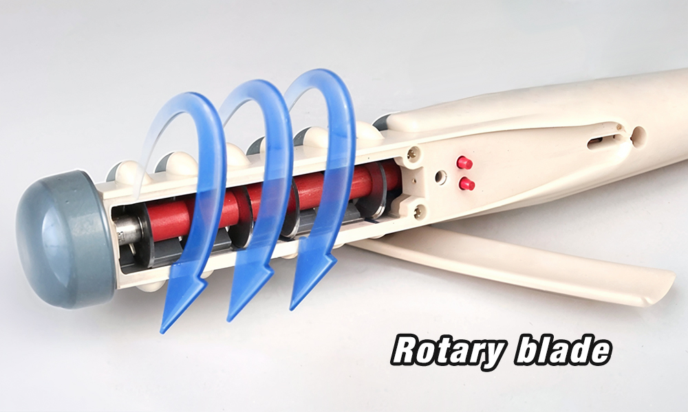 But here's the best part: the rotary blade. This powerful yet safe blade cuts through even